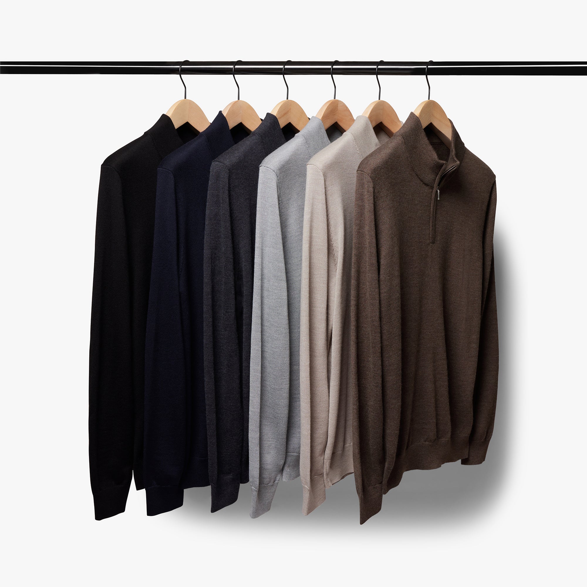 Merino Wool Silk Half Zip Shadow Melange Mens
